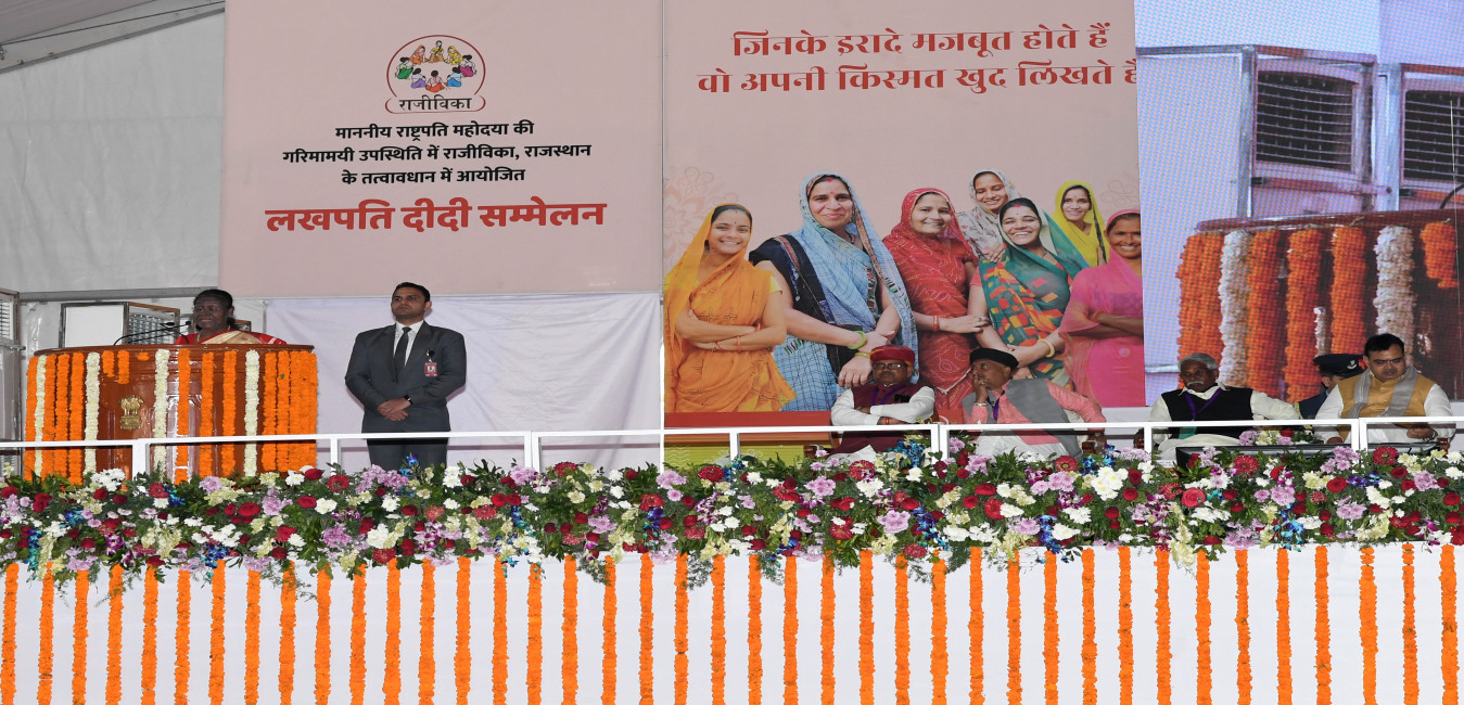 The President of India, Smt Droupadi Murmu graced the Lakhpati Didi Sammelan at Jaisalmer, Rajasthan on December 23, 2023.