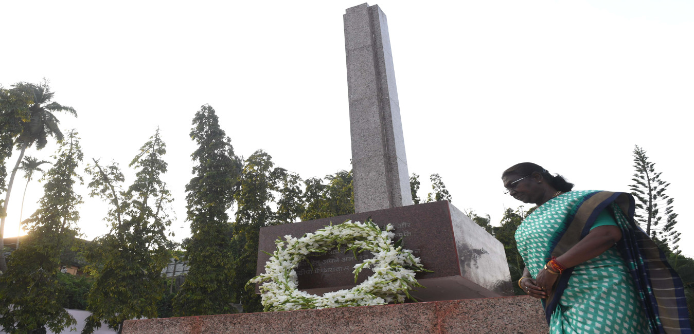 The President of India Smt Droupadi Murmu visited the historic Cellular Jail in Port Blair, laid a wreath at the Martyr’s Column and visited the cell of the great freedom fighter Veer Savarkar in Port Blair on February 19, 2024.