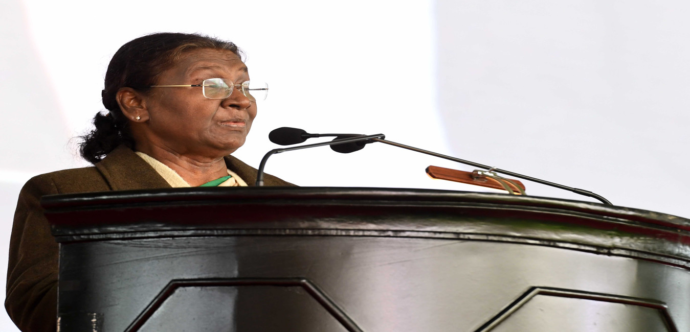 The President of India Smt. Droupadi Murmu witnessed the Integrated Fire Power exercise conducted by India Army at Pokhran in Rajasthan on December 23, 2023.