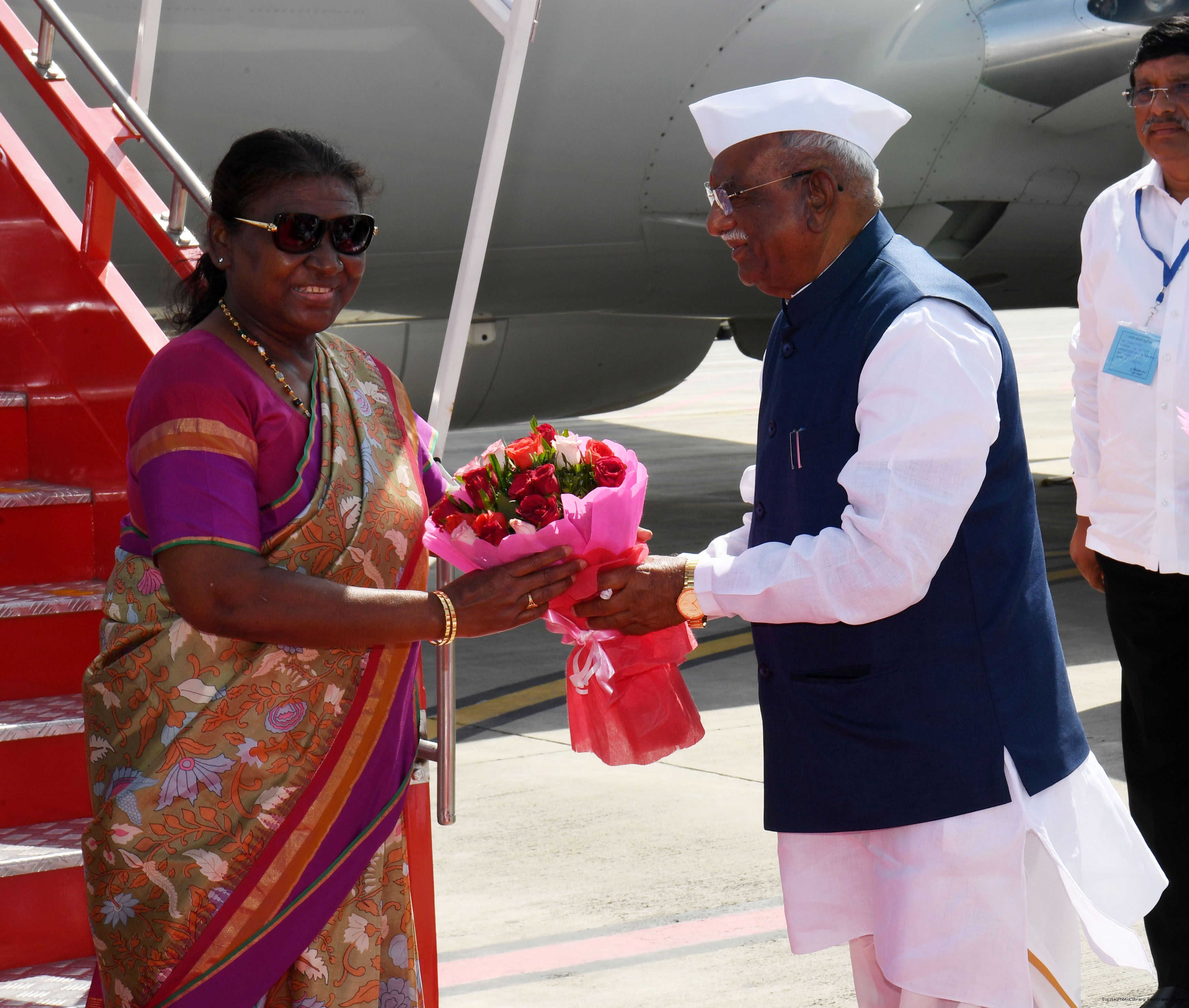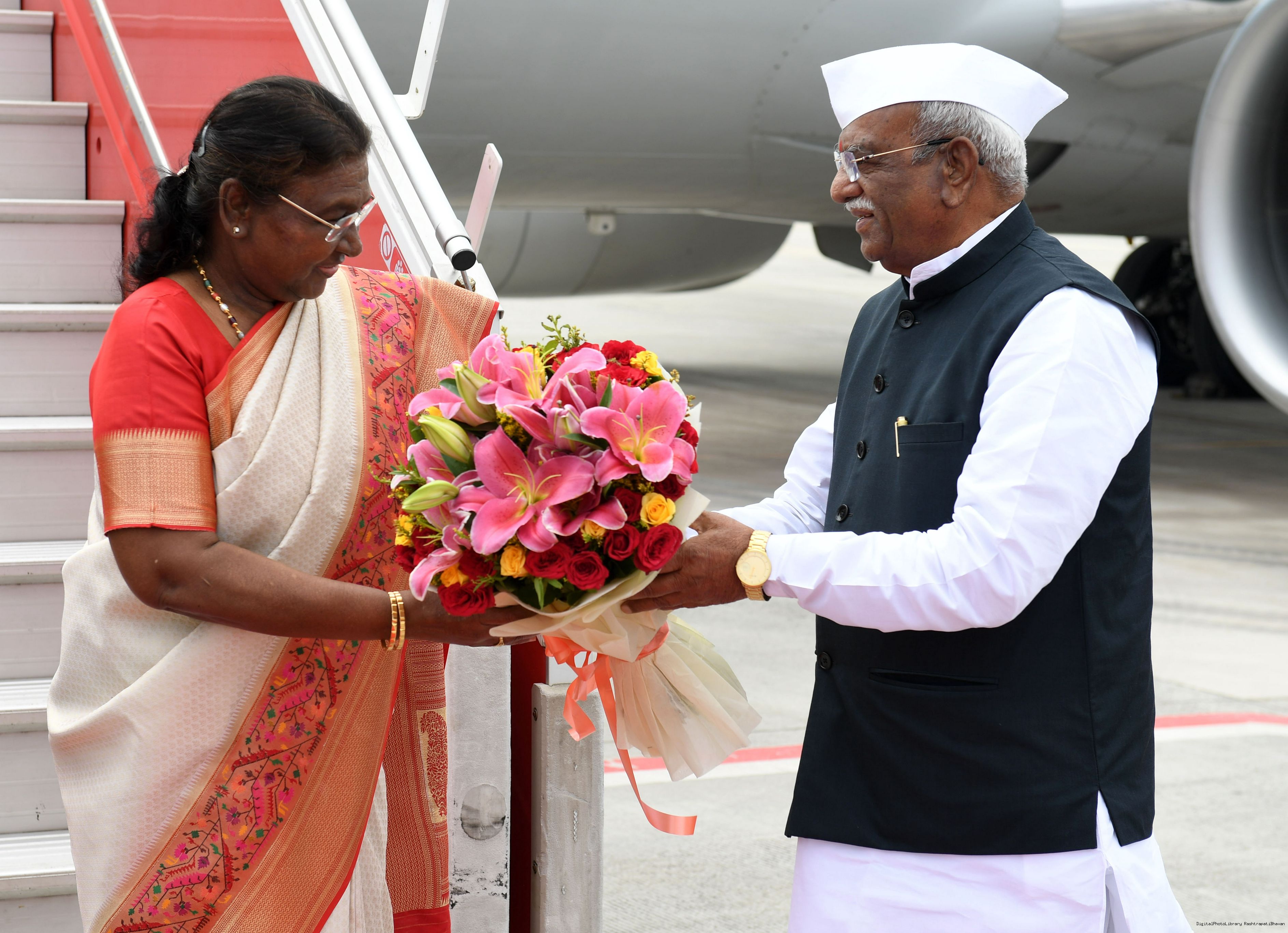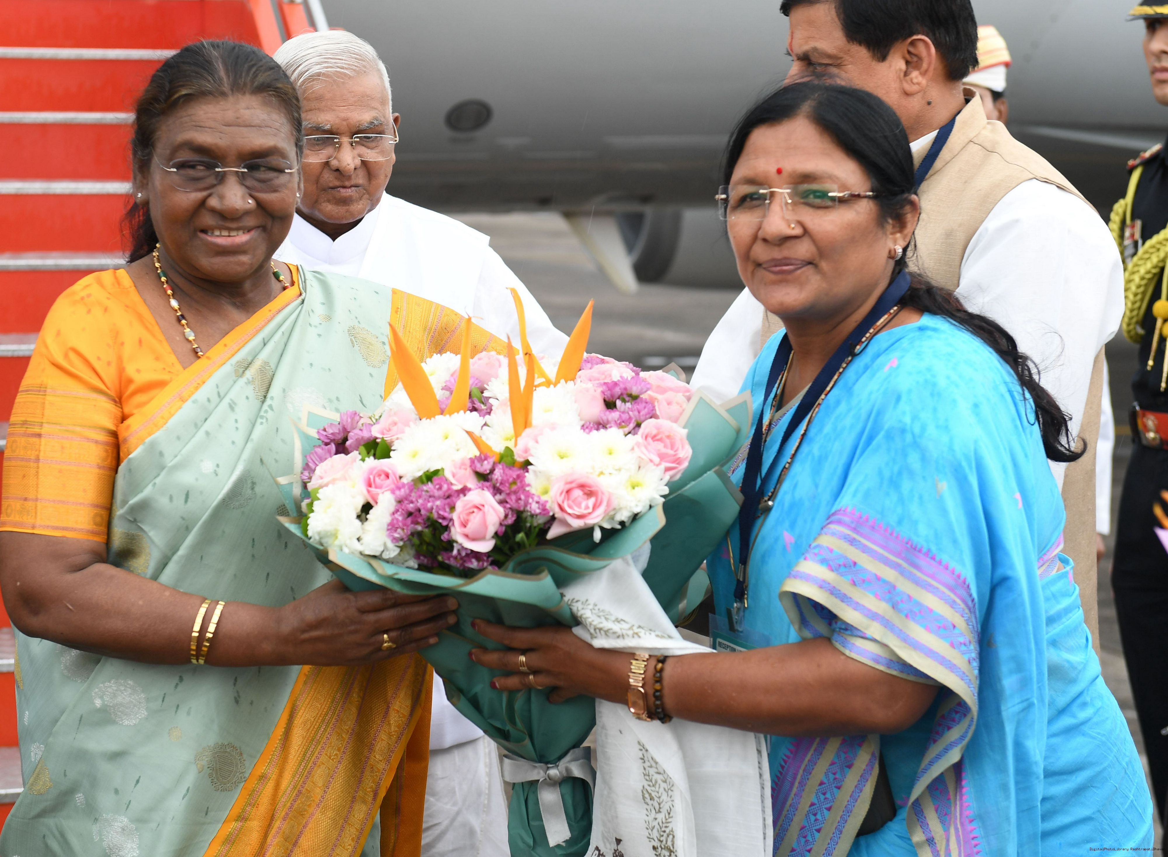 The Governor of Jharkhand, Shri Santosh Kumar Gangwar, Union Minister of Agriculture Farmers Welfare and Rural Development Shri Shivraj Singh Chouhan and Chief Minister Shri Hemant Soren received the President of India Smt. Droupadi Murmu on her arrival in Ranchi on September 19, 2024.