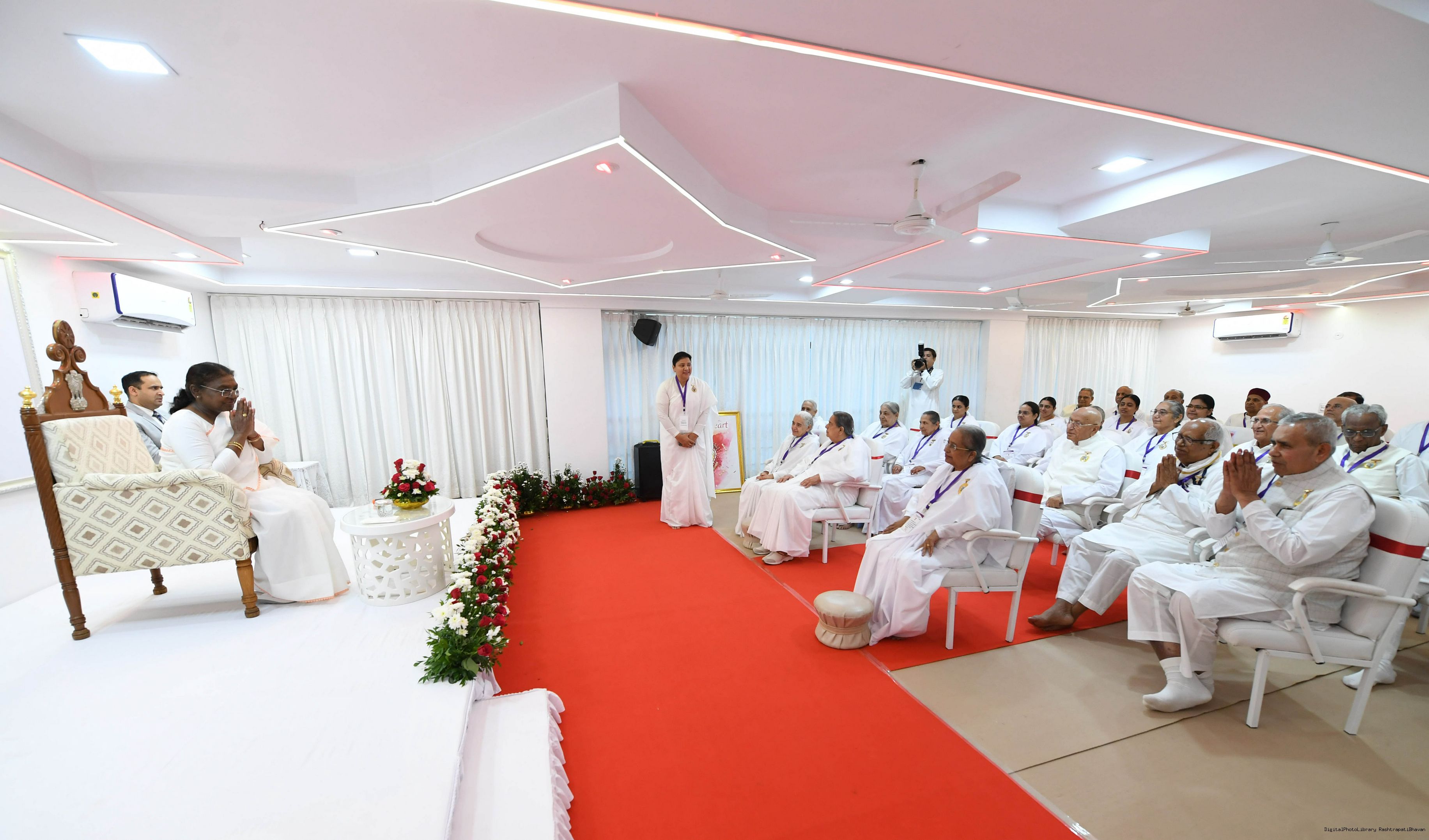 The President of India, Smt. Droupadi Murmu met with Rajyogini Dadi Ratan Mohini Ji Chief Brahma Kumaris and other Seniors at Gulshan Building Rajasthan on October 3, 2024.