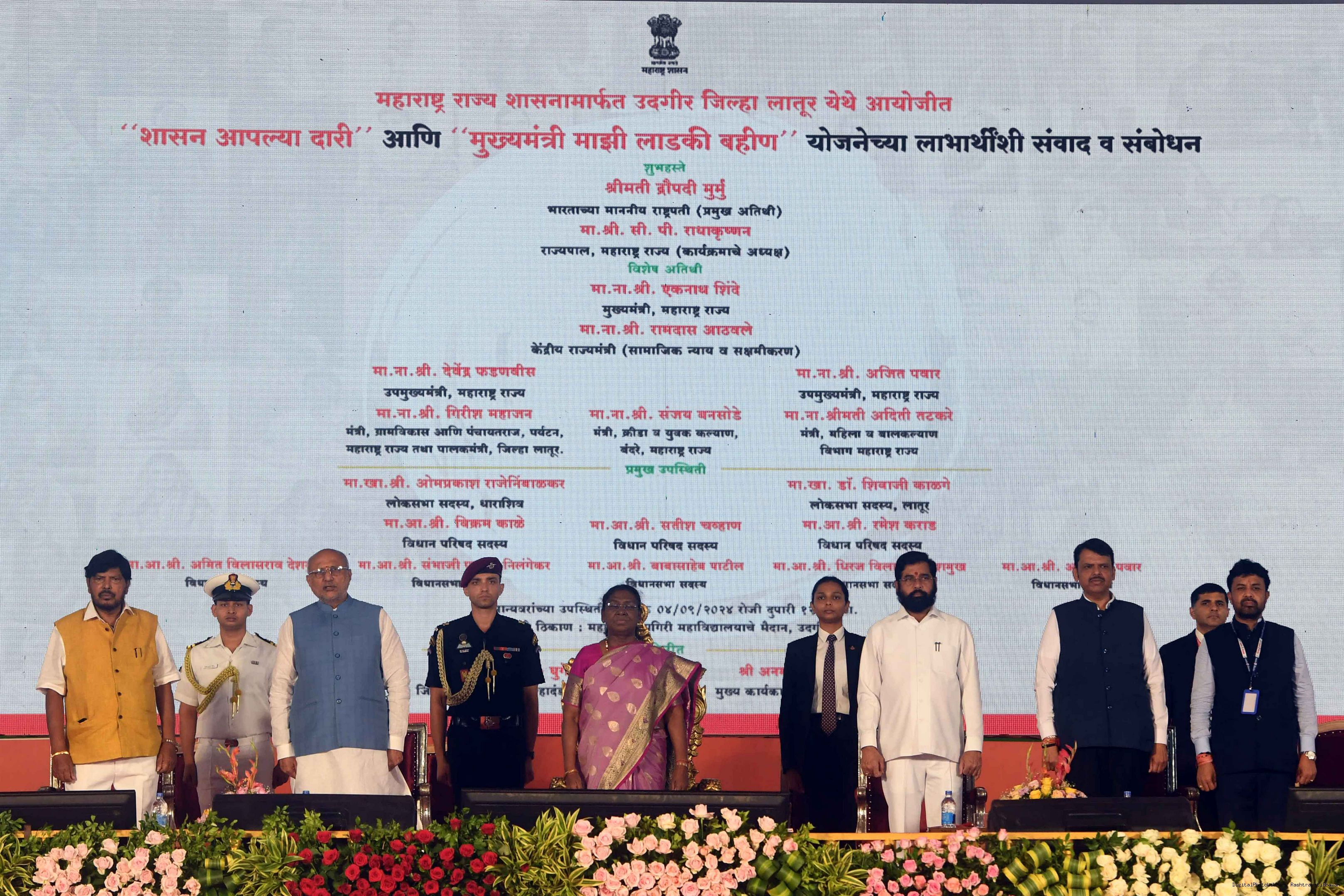 The President of India, Smt. Droupadi Murmu addressed a gathering of beneficiaries of ‘Shasan Aplya Dari’ and ‘Mukhyamantri Majhi Ladki Bahin Yojna’ of the Government of Maharashtra at Udgir on September 4, 2024.