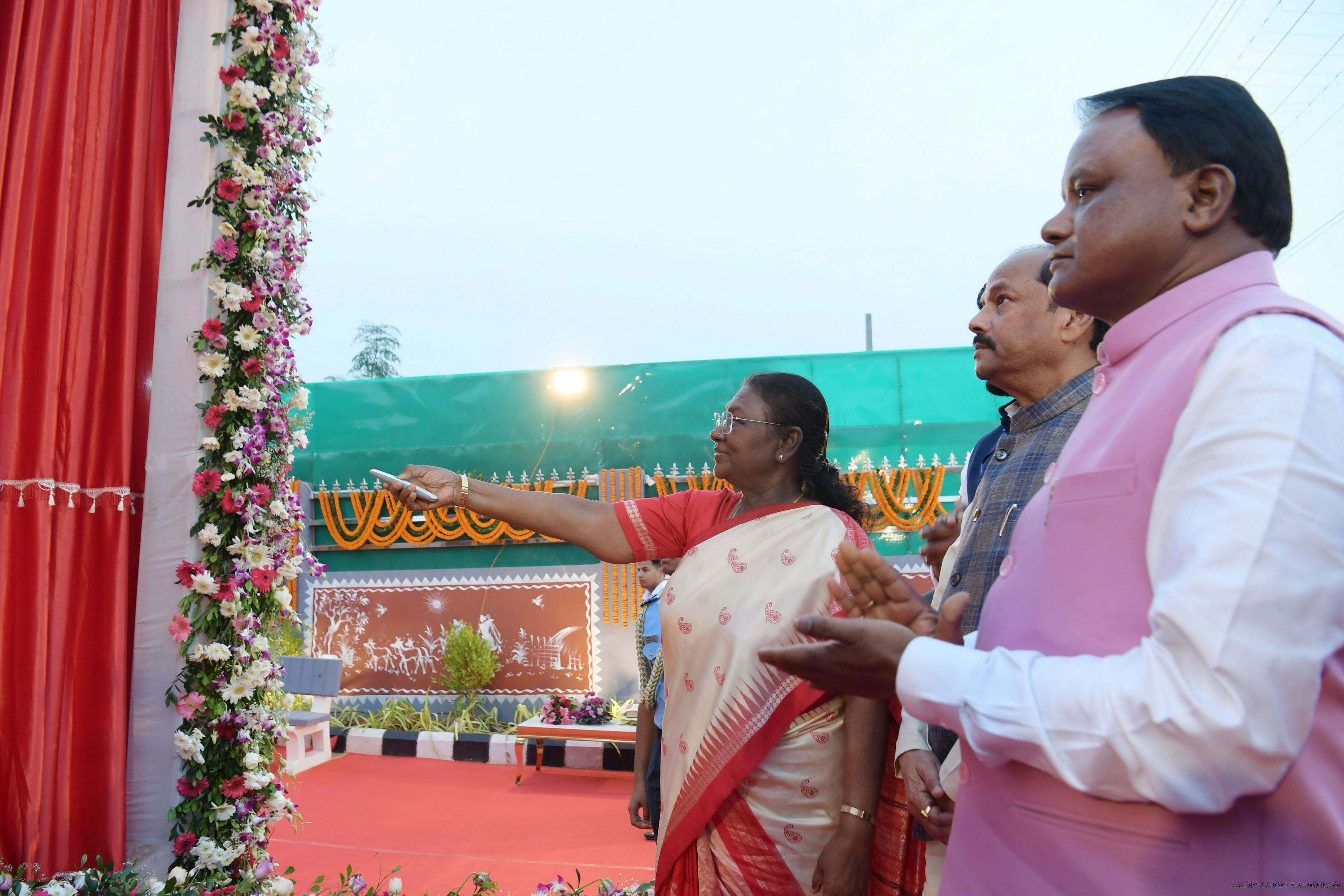 The President of India Smt. Droupadi Murmu inaugurated the statue of Pandit Raghunath Murmu and visited adim owar jara baher Mandir at Bhubaneswar in Odisha on December 3, 2024.