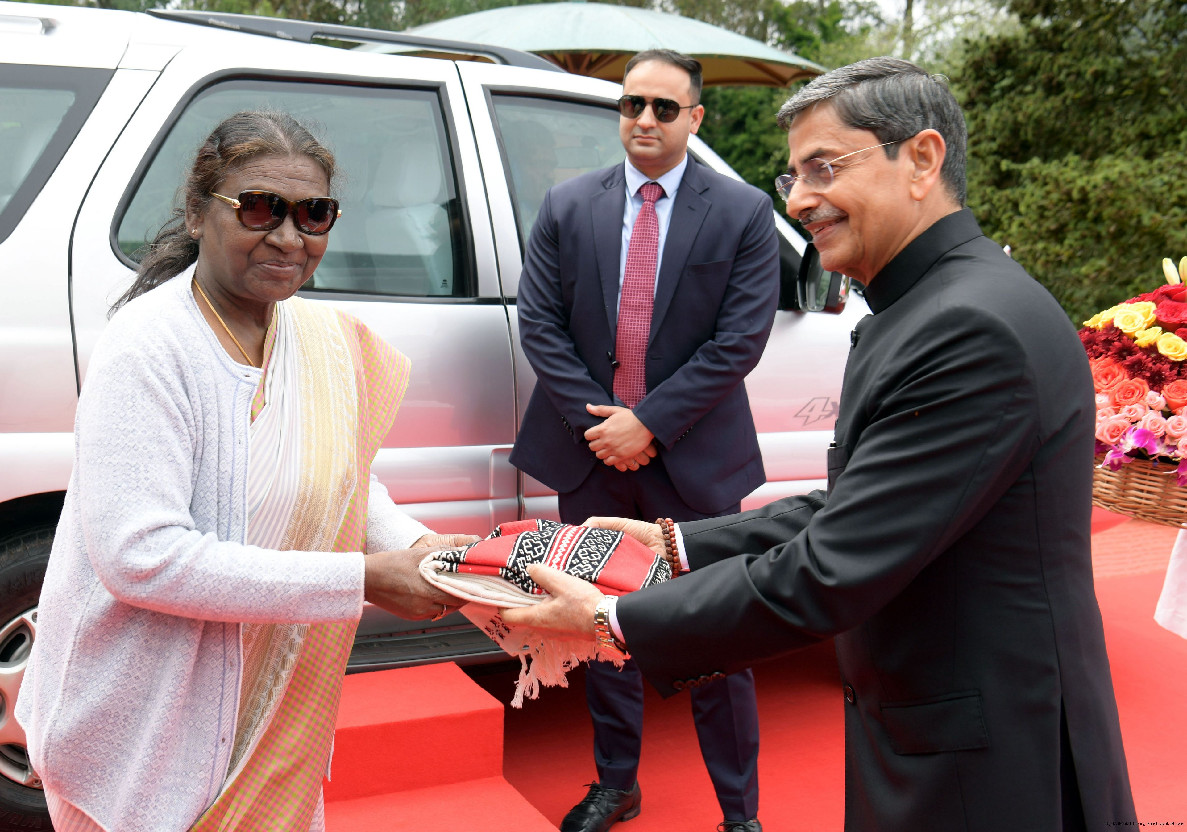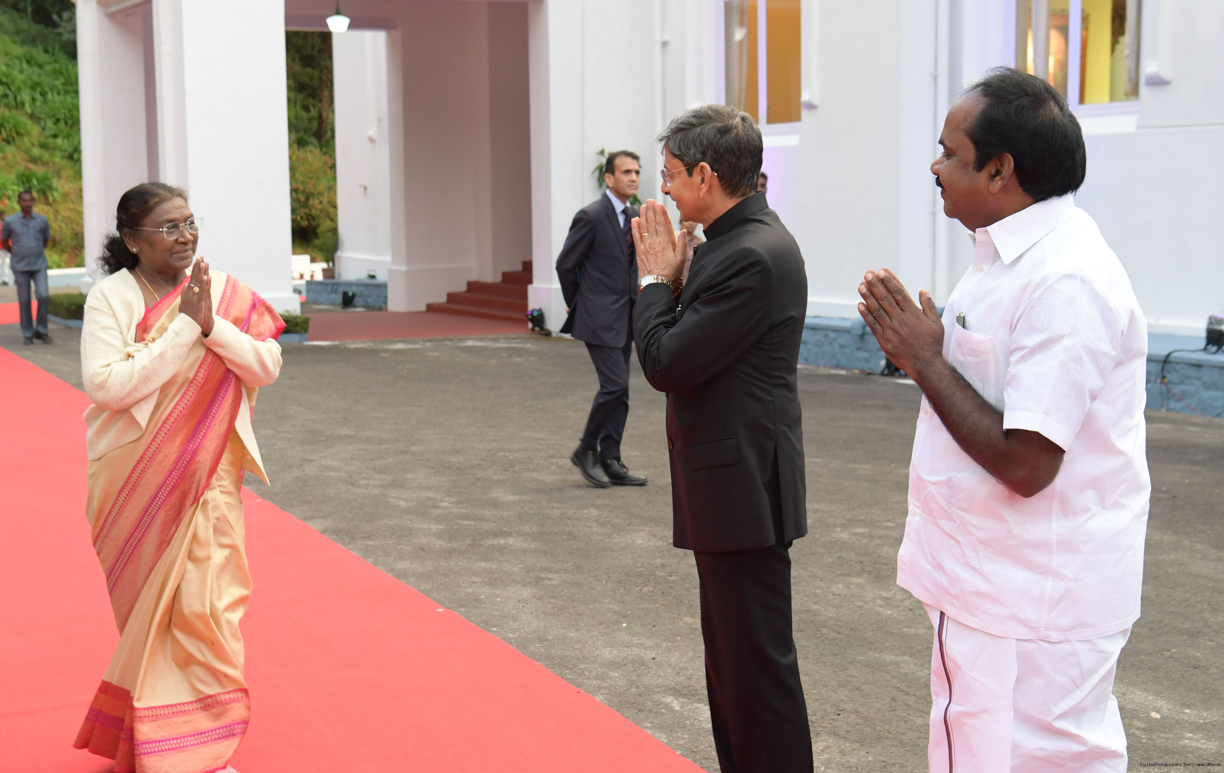 The Governor of Tamil Nadu, Shri R.N. Ravi received the President of India Smt. Droupadi Murmu on her arrival in Raj Bhavan Udhagamandalam on November 26, 2024.
