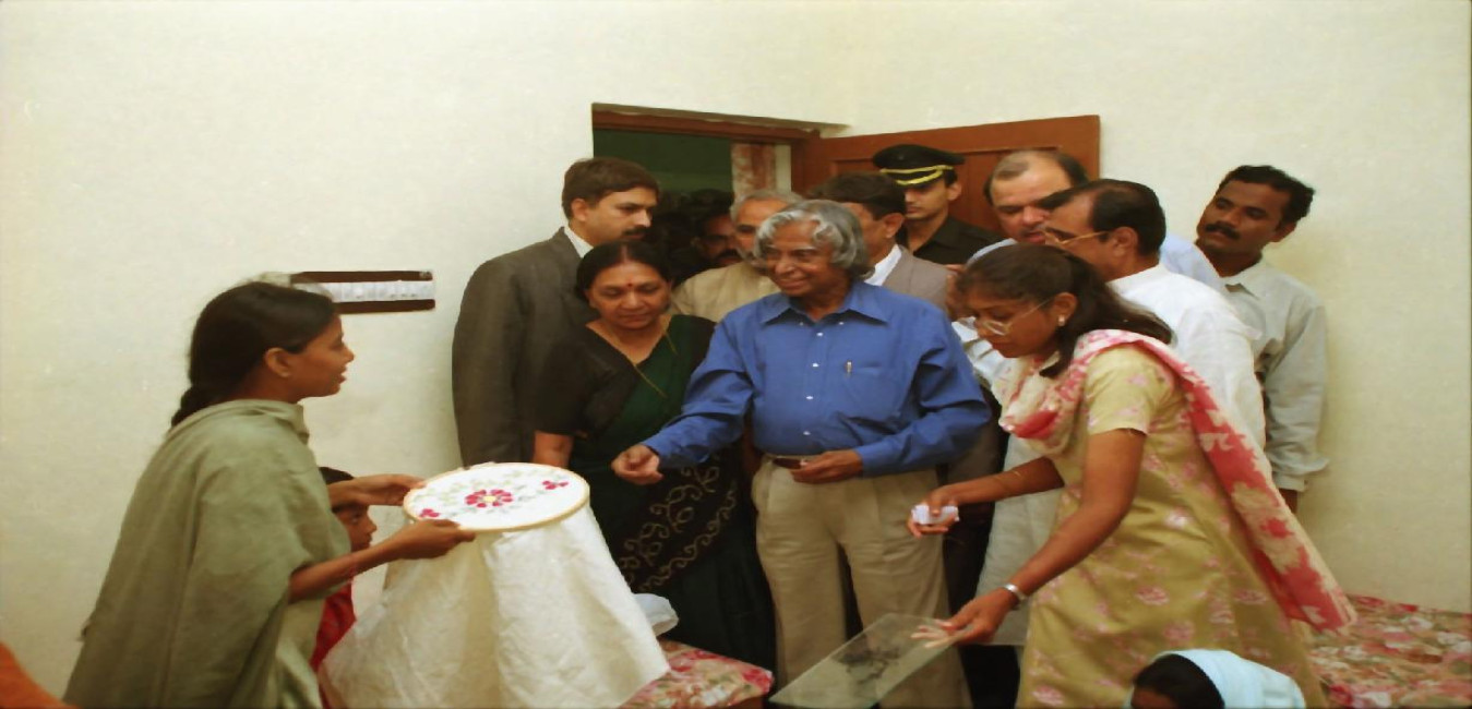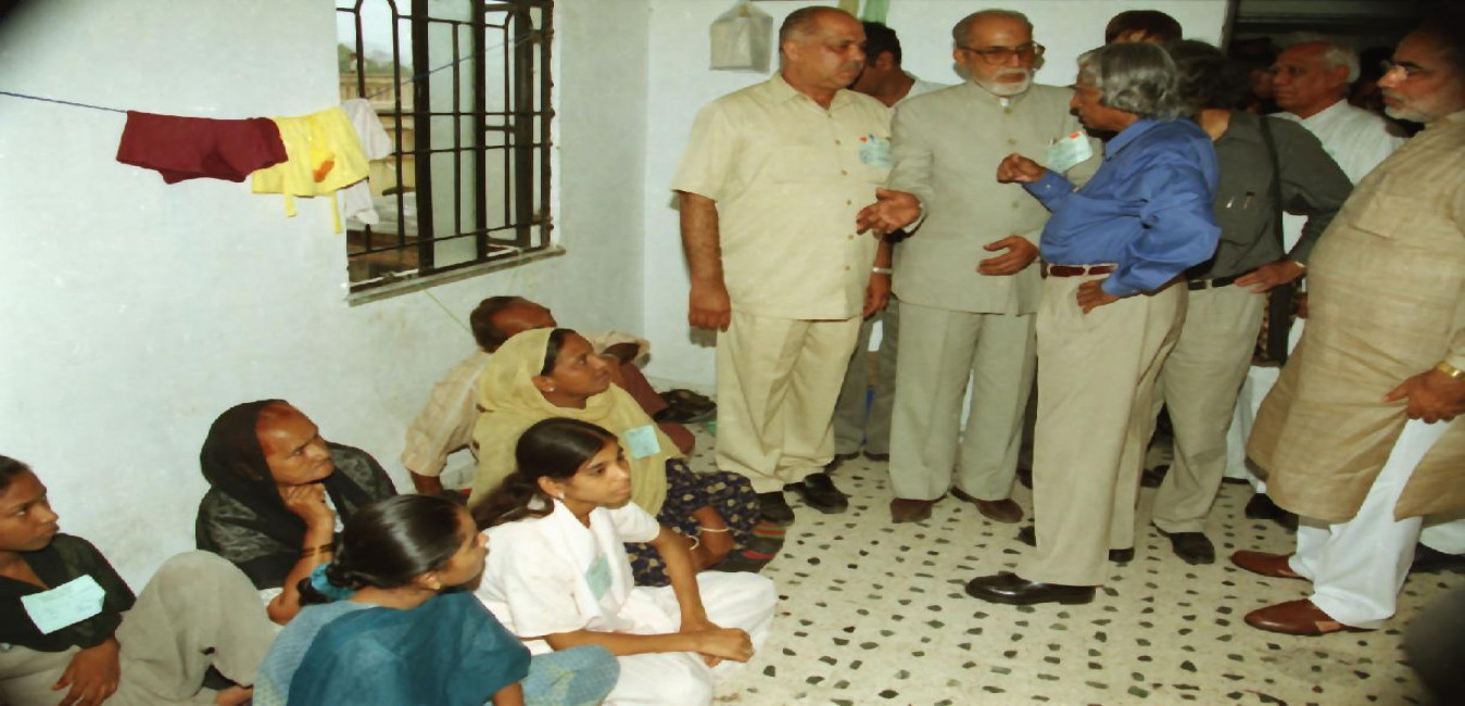 The President of India, Dr A P J Abdul Kalam visiting to the Widow House in Gujarat on Aug 12, 2002