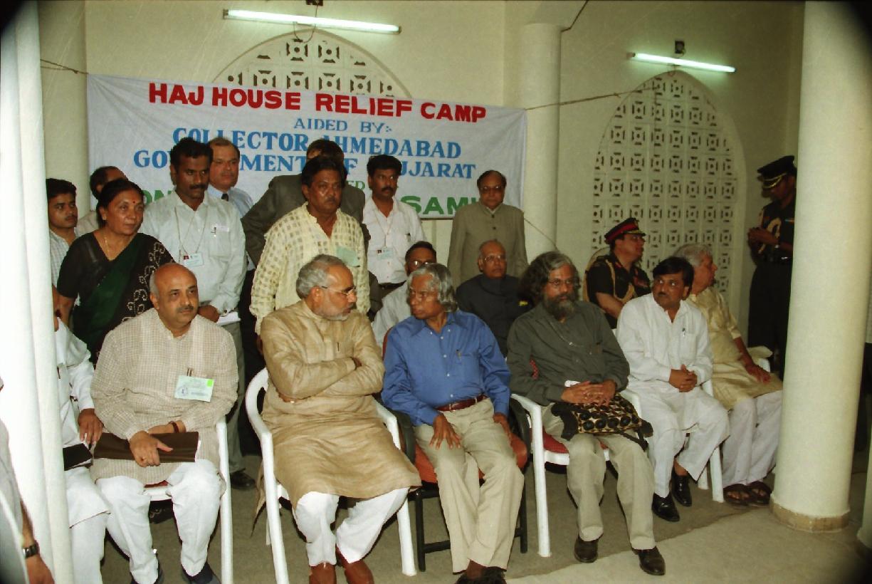 The President of India, Dr A P J Abdul Kalam visiting to Haj House Relief Camp in Gujarat on Aug 12, 2002