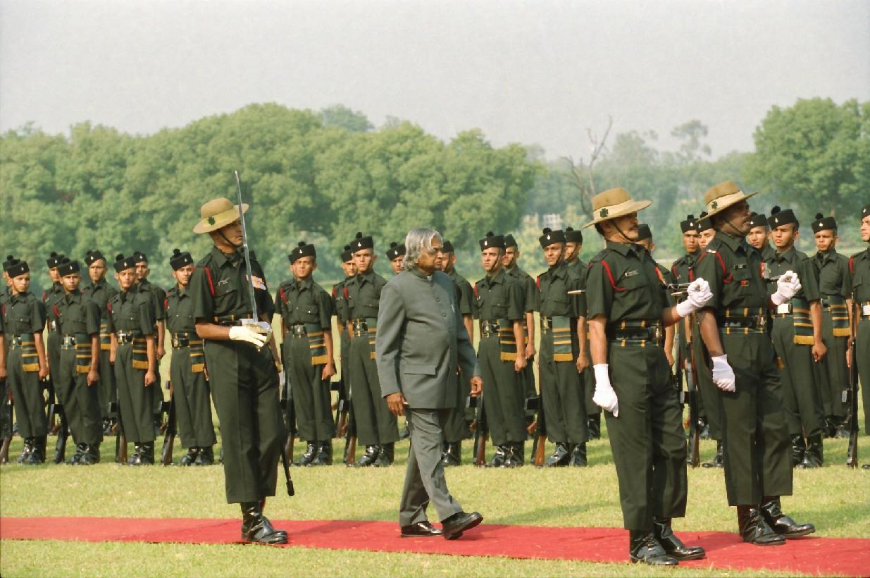 The President of India, Dr A P J Abdul Kalam inspecting Guard of Honour at Dehradun Helipad in Uttarakhand on Oct 19, 2002
