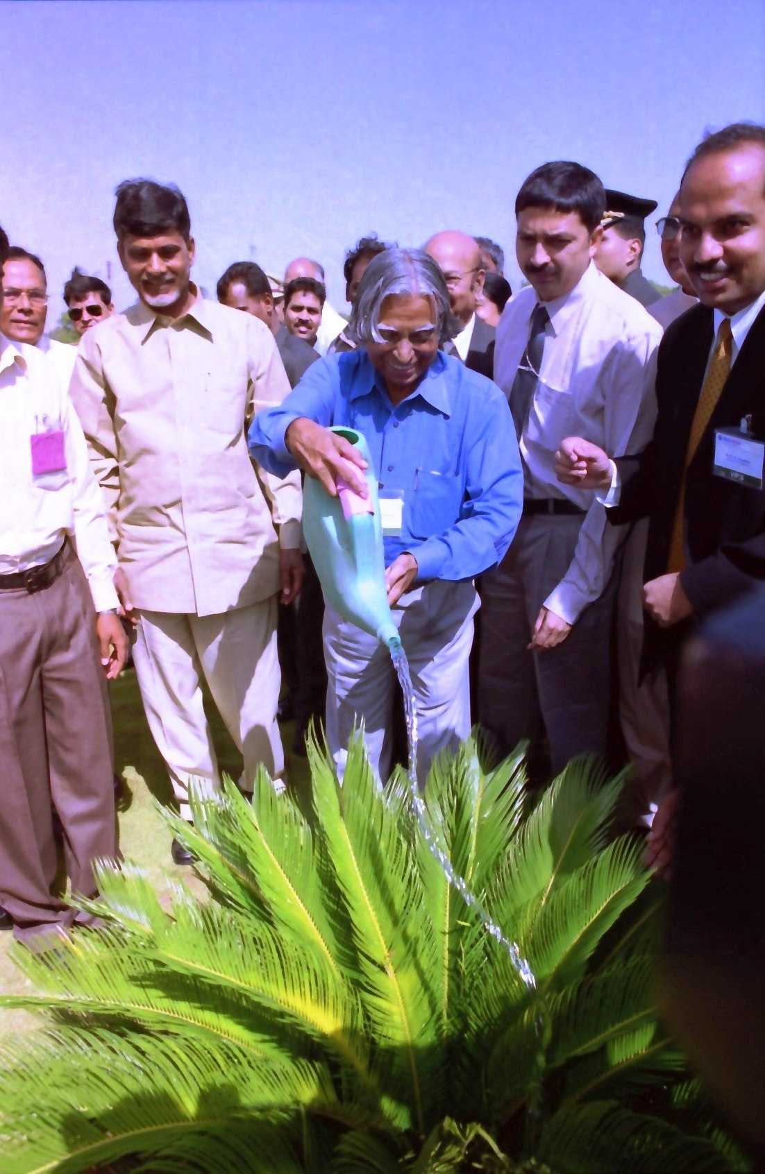 The President of India, Dr A P J Abdul Kalam visiting to the Fields Implementing Advance Technology and meeting with the Farmers at Kuppam in Andhra Pradesh on June 07, 2003