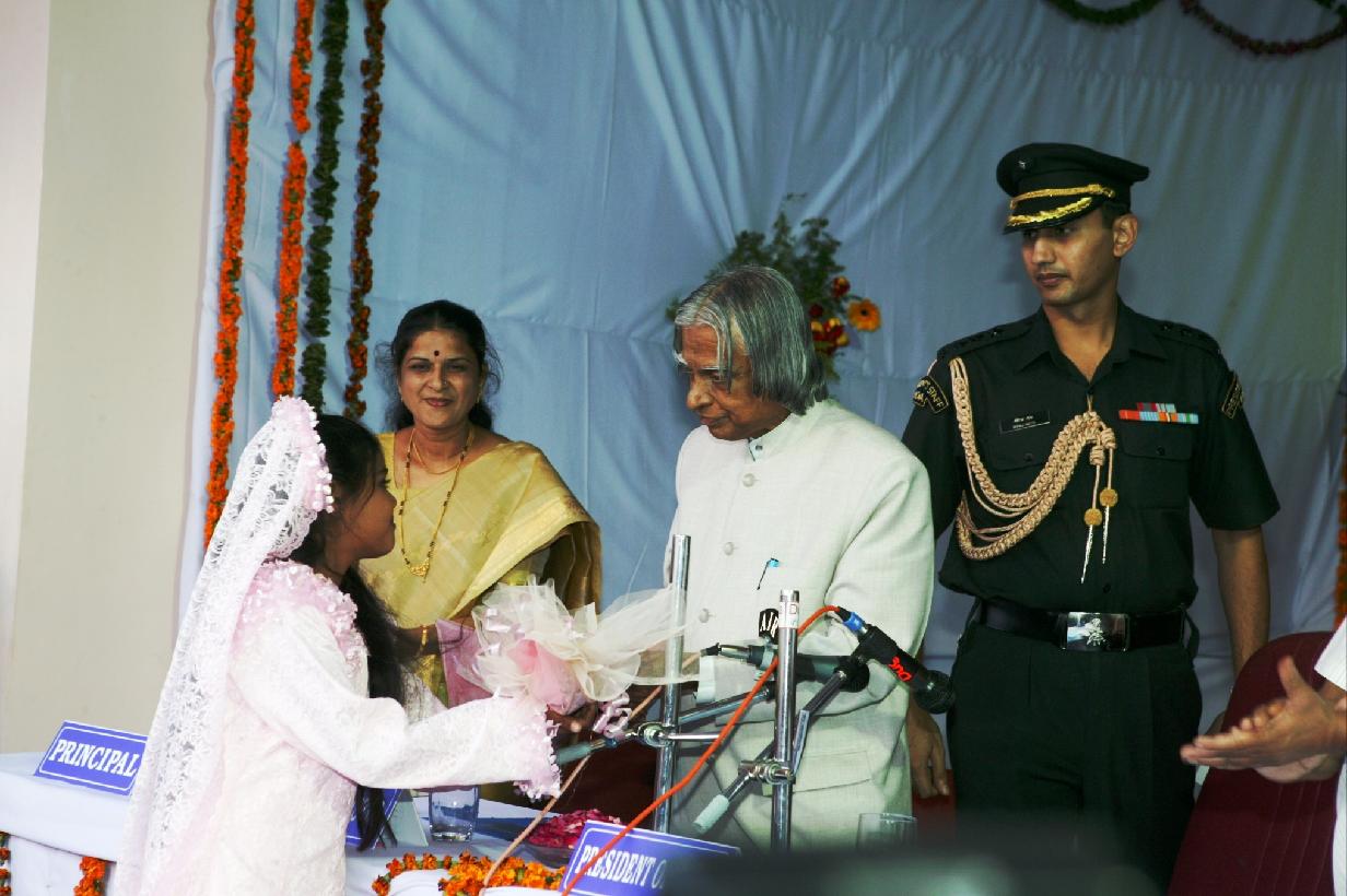 The President of India, Dr A P J Abdul Kalam interacting with the School Children at Indra Vidya Niketan High School at Hyderabad in Andhra Pradesh on Jan 19, 2004