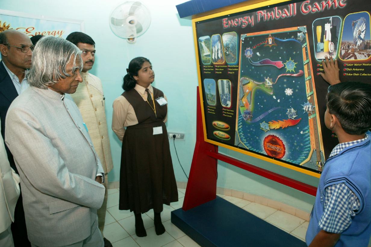The President of India, Dr A P J Abdul Kalam visiting the Energy Park and interacting with the School Children at Raipur in Chhattisgarh on Jan 28, 2004