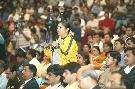 The President of India, Dr A P J Abdul Kalam interacting with the Students, Faculty and Staff of IISc at Bangalore in Karnataka on Jan 16, 2004