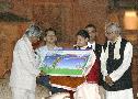The President of India, Dr A P J Abdul Kalam being seen off by the Governor of Gujarat, Shri Kailashpati Mishra at Ahmedabad Airport in Gujarat on Feb 08, 2004