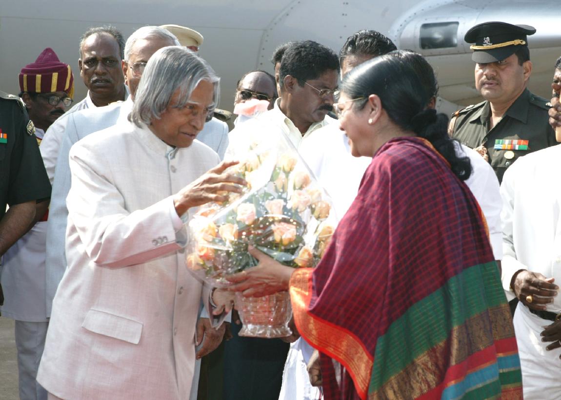 The President of India, Dr A P J Abdul Kalam being received at Chennai Airport in Tamil Nadu on Feb 06, 2004
