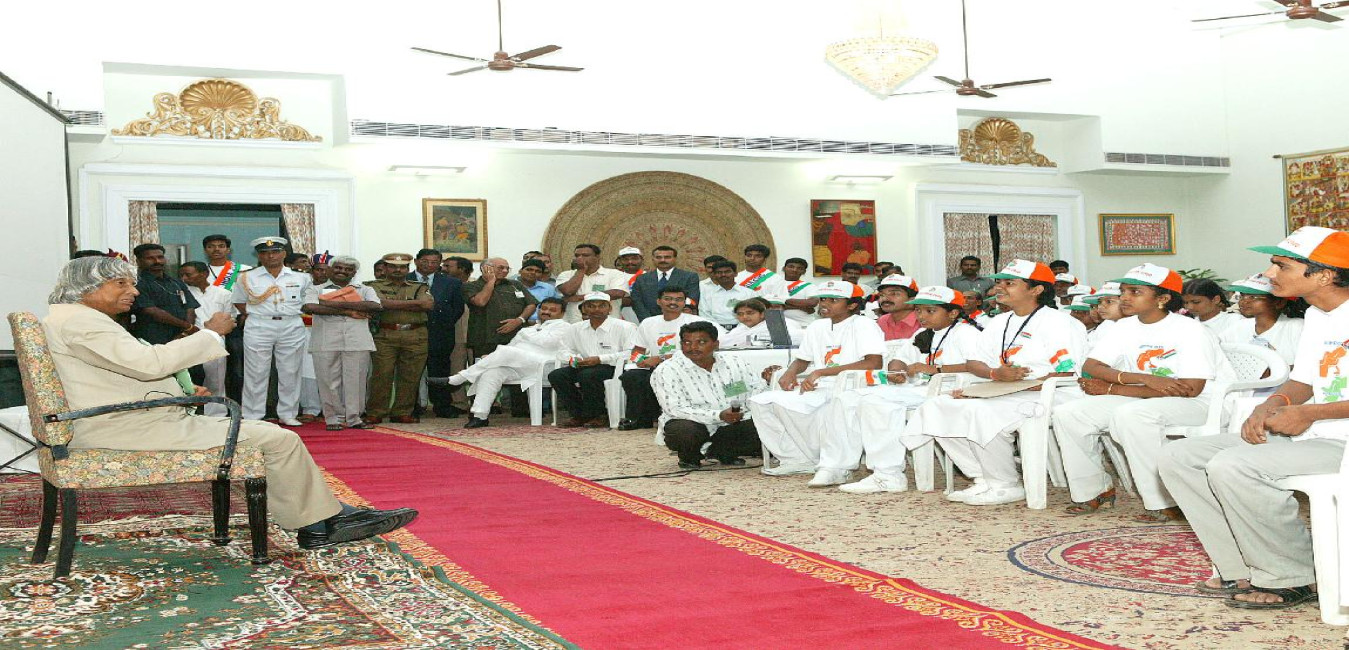 The President of India, Dr A P J Abdul Kalam interacting with the Students being Organised by Lead India 2020 Foundation at Hyderabad in Andhra Pradesh on July 14, 2004