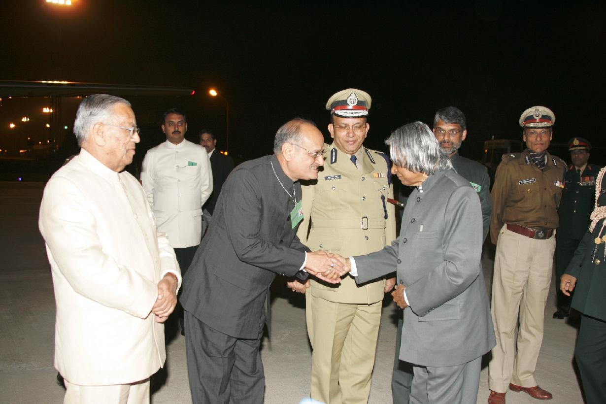 The President of India, Dr A P J Abdul Kalam being received by the Governor of Gujarat, Shri Nawal Kishore Sharma at Ahmedabad Airport in Gujarat on Jan 05, 2005