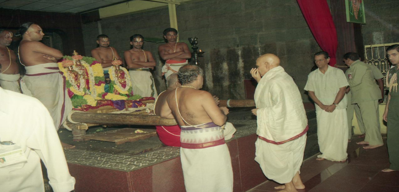 The President of India, Dr. Shankar Dayal Sharma visiting Padmavati Ammavari Temple, at Tiruchanur, Andhra Pradesh on November 24, 1995.