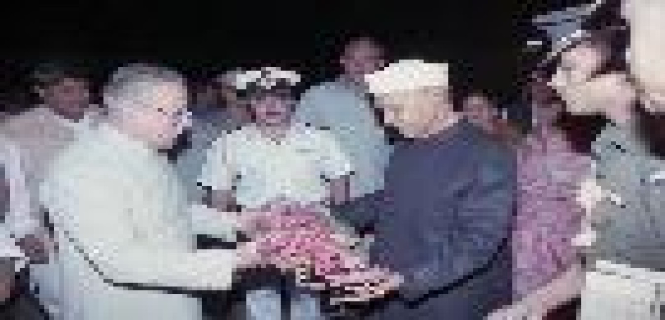The President of India, Dr. Shankar Dayal Sharma being received by the Governor, Madhya Pradesh, Shri Mohammad Shafi Qureshi, at Bhopal airport, Madhya Pradesh on November 02, 1995.
