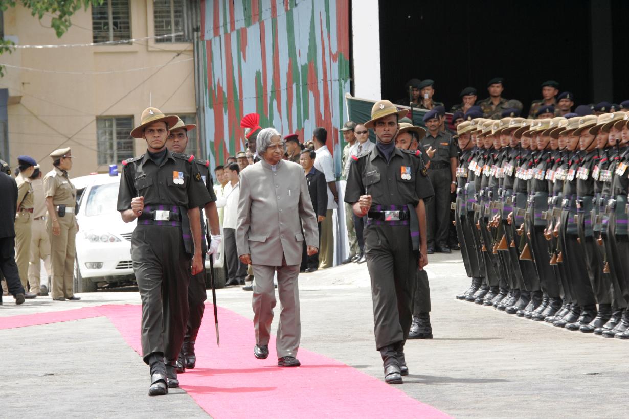 The President of India, Dr A P J Abdul Kalam inspecting the Guard of Honour at Gangtok (Libing Helipad) in Sikkim on Sep 22, 2005
