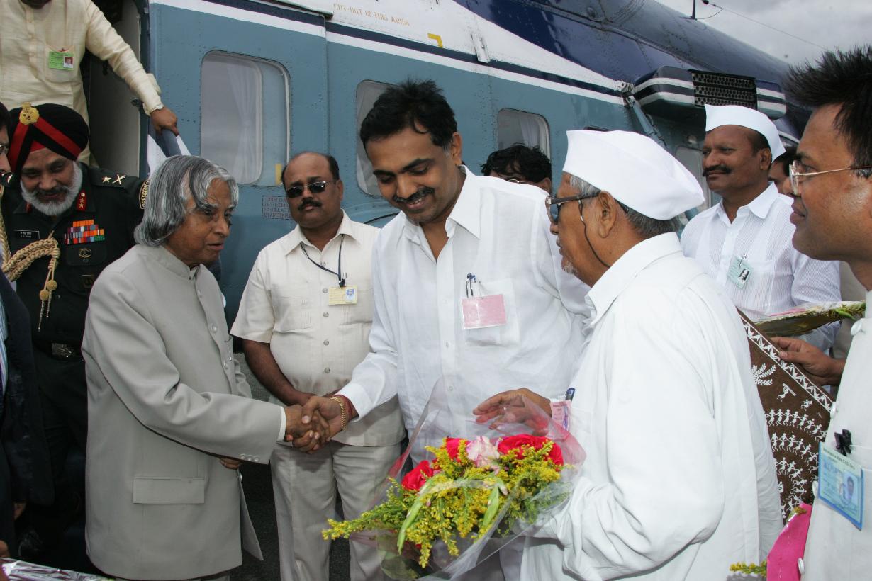 The President of India, Dr A P J Abdul Kalam arriving at Village Loni Helipad District of Ahmednagar in Maharashtra on Oct 15, 2005