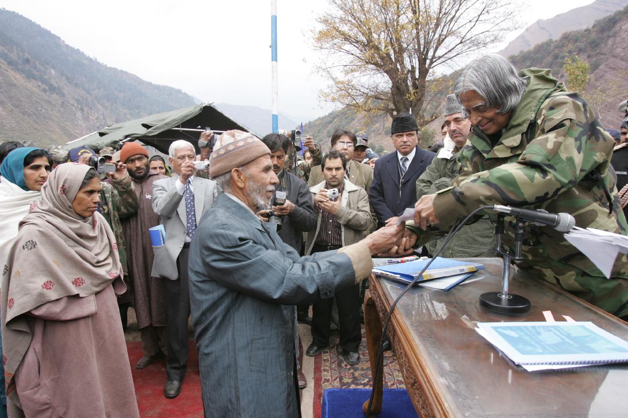 The President of India, Dr A P J Abdul Kalam visiting the Tangdhar Bazar and interacts with the Earthquake Affected People at Tanghar in Jammu & Kashmir on Nov 26, 2005