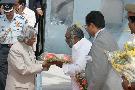 The President of India, Dr A P J Abdul Kalam being received by the Governor of Jammu & Kashmir, Shri S K Sinha at Srinagar AF Stn in Jammu & Kashmir on Nov 26, 2005