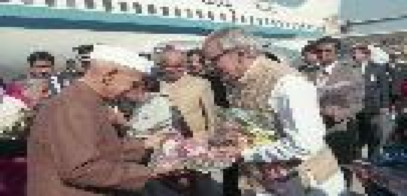 The President of India, Dr. Shankar Dayal Sharma being received by the Governor, Rajasthan, Shri Bali Ram Bhagat and the Chief Minister, Rajasthan, Shri Bhairon Singh Shekhawat, at Jaipur airport on December 18, 1995.