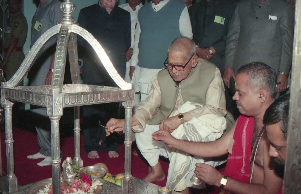 The President of India, Dr. Shankar Dayal Sharma offering Puja at Shri Sai Temple, at Shirdi in Maharashtra on December 07, 1995.