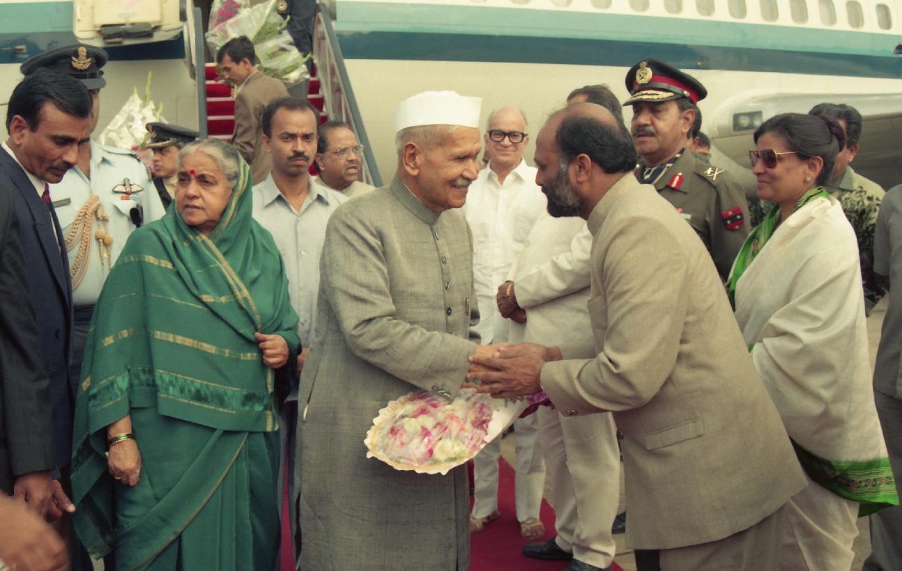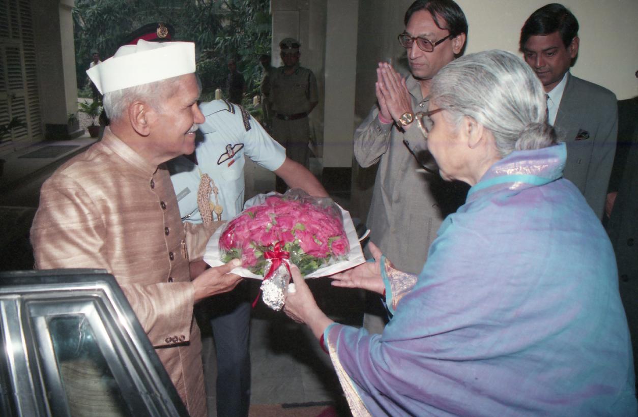 The President of India, Dr. Shankar Dayal Sharma being received at Pune on January 10, 1996.