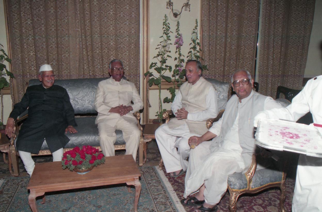 The President of India, Dr. Shankar Dayal Sharma meeting with Jainacharya Jayantsen Surishwarji Maharaj and receives Anekant Ratna, at the Jainacharya Jayanstsen Suri Foundation Trust Function, in Mumbai on January 09, 1996.