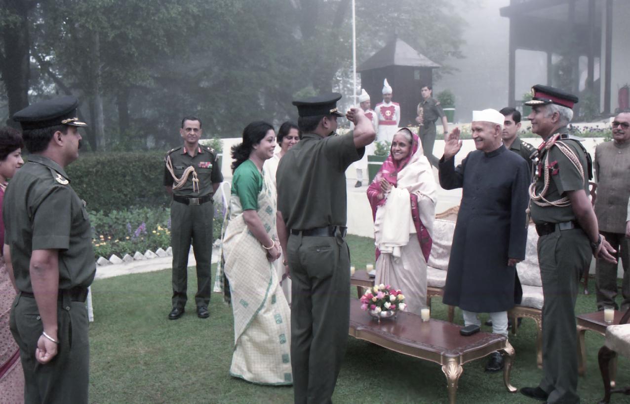 The President of India, Dr. Shankar Dayal Sharma meeting with Officers and their wives from Army Training Command, Shimla, in Himachal Pradesh on June 23, 1996.