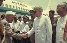The President of India, Dr. Shankar Dayal Sharma being received by the Governor, Goa, Shri Romesh Bhandari and Chief Minister, Goa, Shri Pratapsingh Rane, at Panjim on June 17, 1996.
