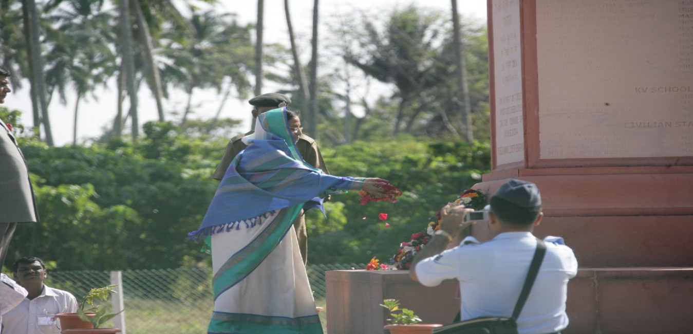 The President of India Smt Pratibha Devisingh Patil laying wreath at Air force Tsunami Memorial in Andaman and Nicobar on Dec 26, 2007