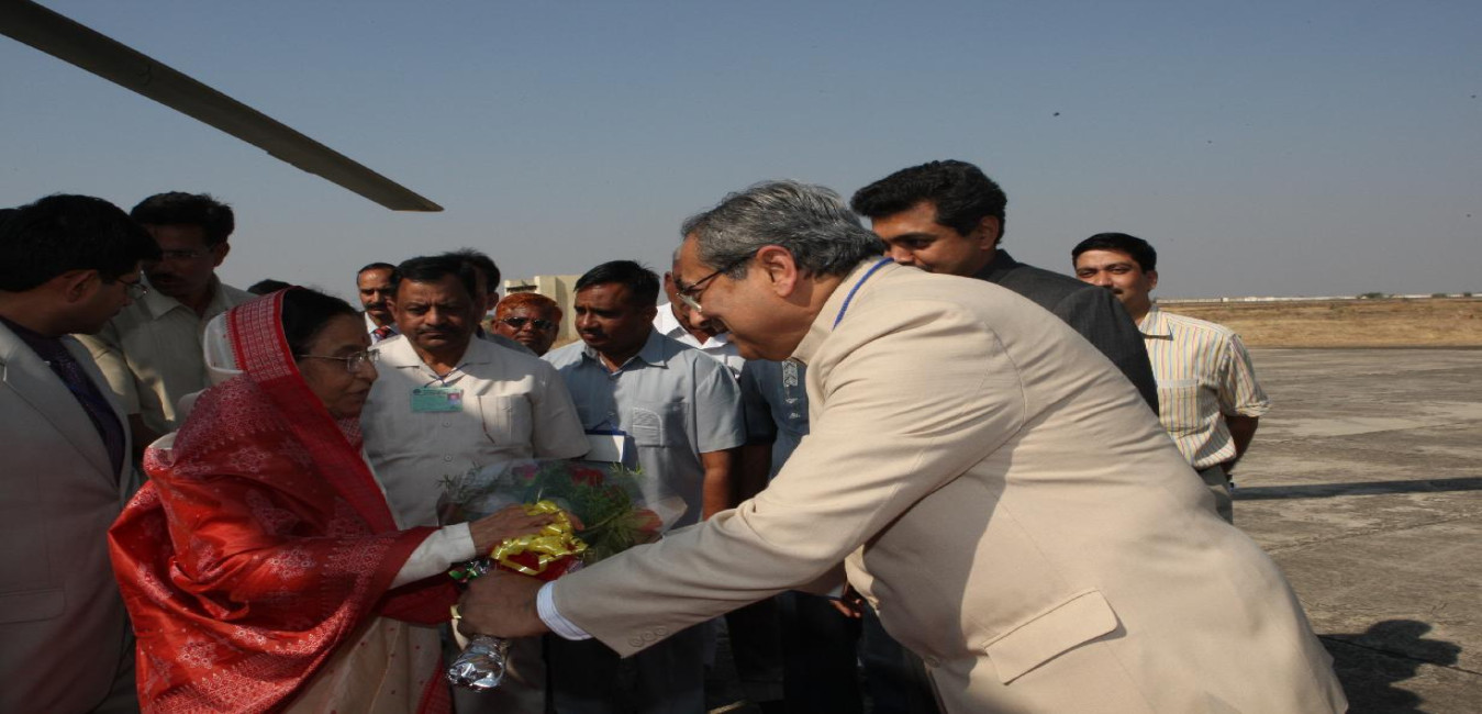 The President of India, Smt Pratibha Devisingh Patil arriving at Solapur Helipad in Maharashtra on Jan 19, 2008