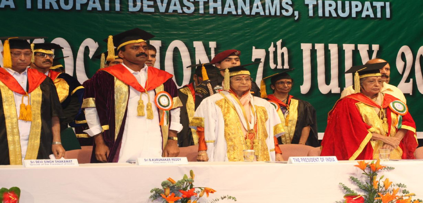 The President of India, Smt Pratibha Devisingh Patil during the Convocation and awarding a Degree to the Students of the Sri Venkateswara Institute of Medical Sciences at Tirupati in Andhra Pradesh on July 07, 2008