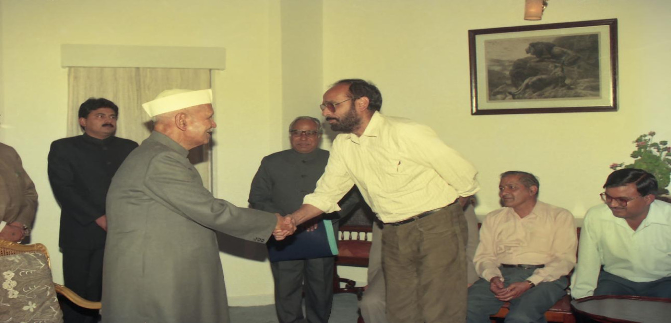 The President of India, Dr. Shankar Dayal Sharma presenting Rajendra Mathur Fellowship, at Bhopal, Madhya Pradesh on August 04, 1996.