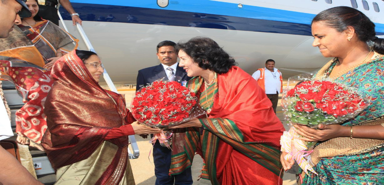 The President of India, Smt Pratibha Devisingh Patil arriving Sri Sathya Sai Airport at Puttaparthi in Andhra Pradesh on May 07, 2009