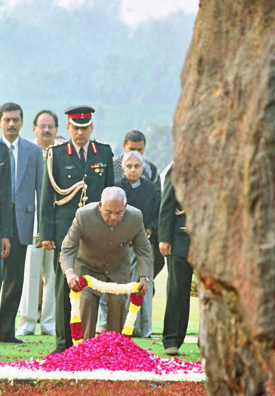 The President of India, Shri K R Narayanan paying floral tributes to the Former President of India, Late Dr Shanker Dayal Sharma on his Birth Anniversary at Karma Bhoomi in New Delhi on August 19, 2000