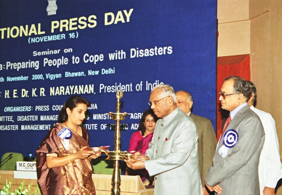 The President of India, Shri K R Narayanan inaugurating the Seminar Role of Media Preparing People to Cope with Disasters at Vigyan Bhavan in New Delhi on Nov 16, 2000