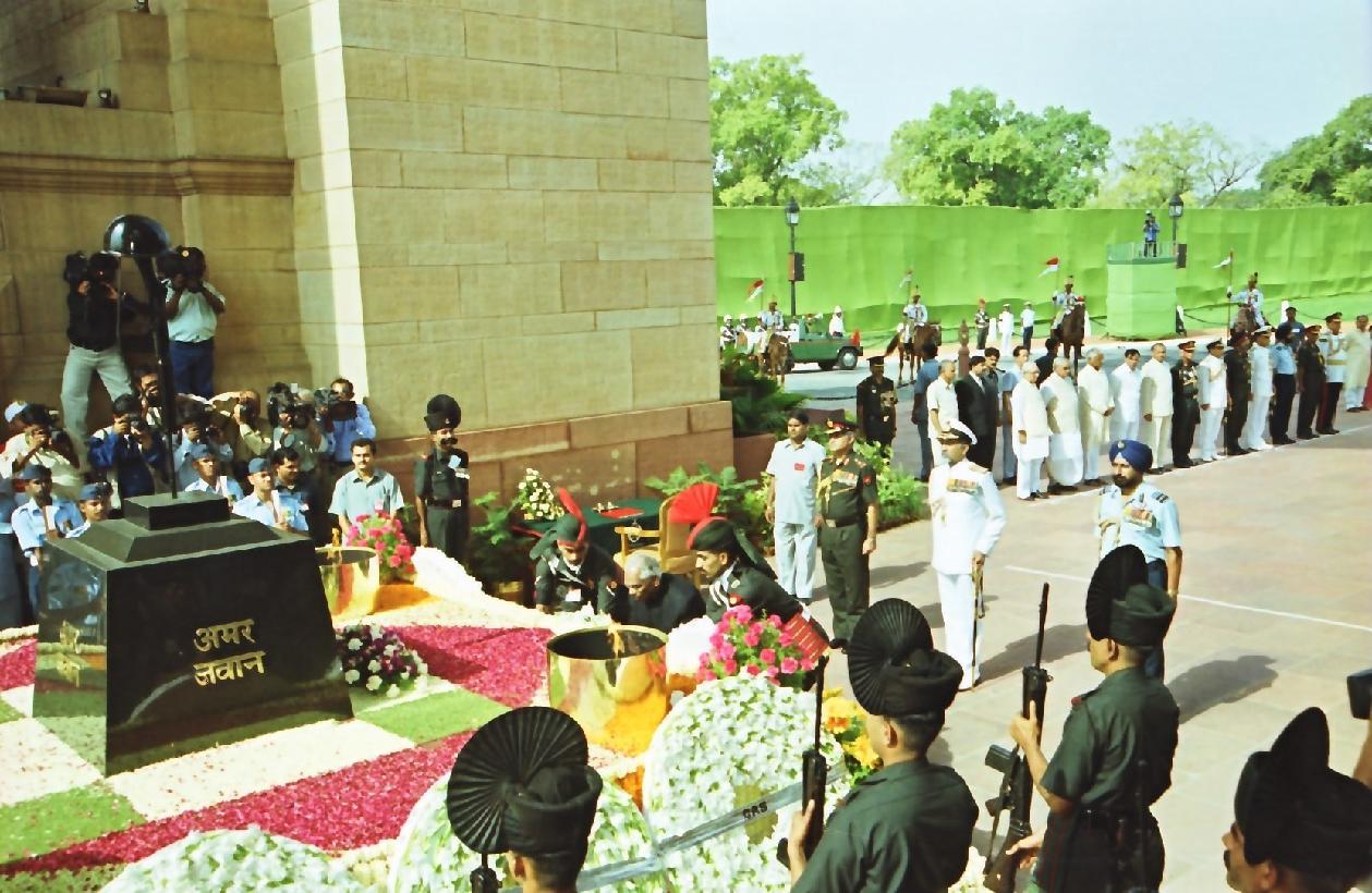 The President of India, Shri K R Narayanan laying a wreath at Amar Jawan Jyoti on Kargil Diwas at India Gate in New Delhi on July 26, 2000