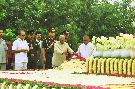 The President of India, Shri K R Narayanan paying homage to the Former Prime Minister of India, Late Shri Rajiv Gandhi on his Birth Anniversary at Vir Bhumi in New Delhi on August 20, 2000