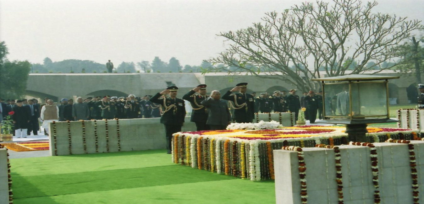 The President of India, Shri K R Narayanan paying homage to the Father of the Nation, Mahatma Gandhi at Rajghat in New Delhi on Jan 30, 2001