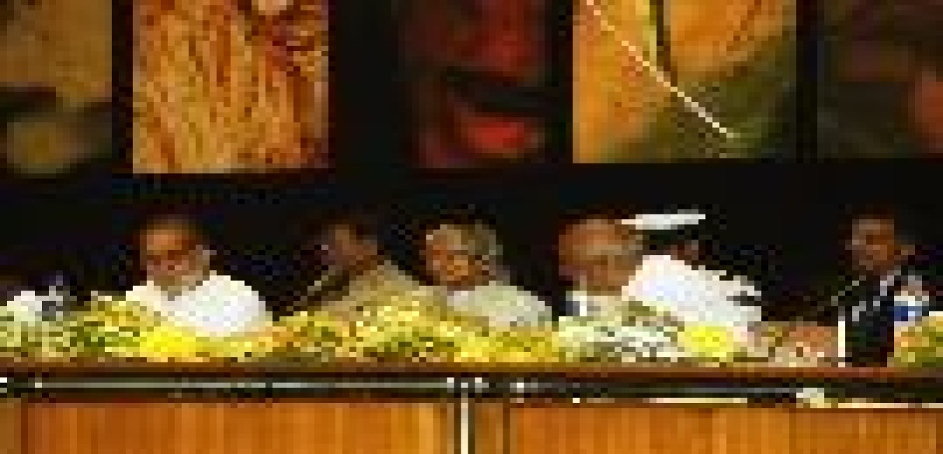 The President of India, Dr A P J Abdul Kalam participating in the Golden Jubilee Celebration of the University Grants Commission at Vigyan Bhavan in New Delhi on Dec 28, 2003