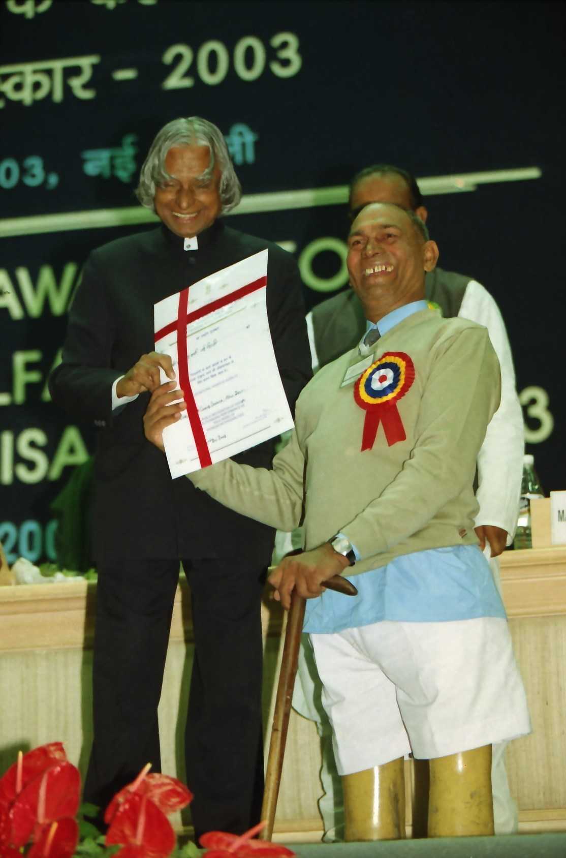 The President of India, Dr A P J Abdul Kalam presenting the National Awards for the Welfare of Persons with Disabilities at Vigyan Bhavan in New Delhi on Dec 03, 2003