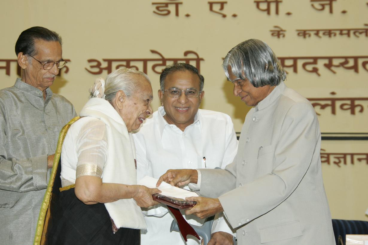 The President of India, Dr A P J Abdul Kalam conferring the Fellowship and Sangeet Natak Academy Awards for 2004 at Vigyan Bhavan in New Delhi on Aug 26, 2005