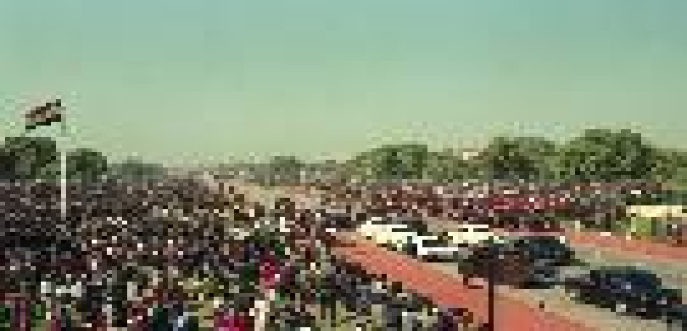 The President of India, Dr. Shankar Dayal Sharma alongwith H.E. Dr. Nelson R. Madela, President of South Africa witnessing the Republic Day Parade, at Rajpath in New Delhi on January 26, 1995.