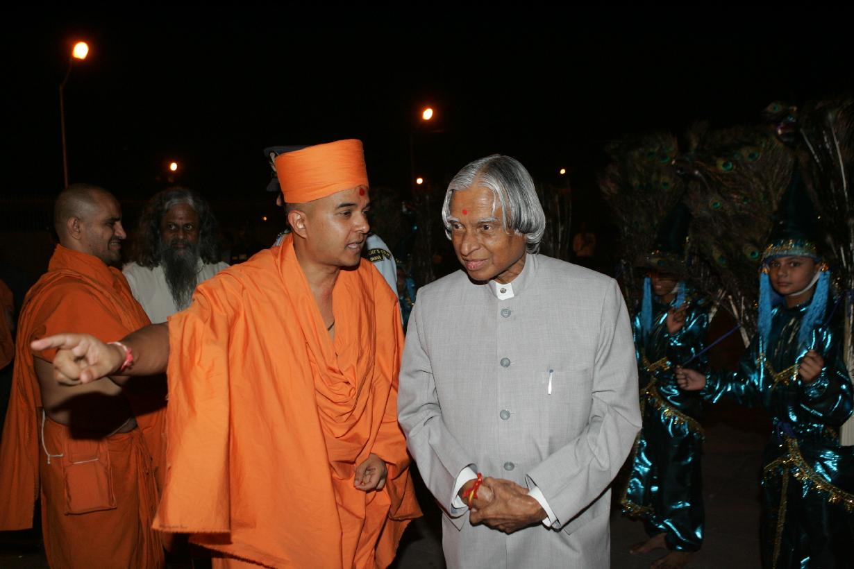 The President of India, Dr A P J Abdul Kalam visiting Swaminarayan Akshardham, Akshardham Setu to meet with HDH Pramukh Swamin Maharaj in New Delhi on Sep 11, 2006