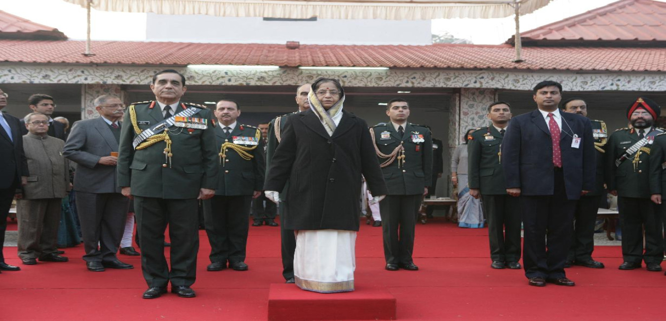 The President of India, Smt Pratibha Devisingh Patil during the Army Day Reception 2010 hosted at the Residence of the Chief of Army Staff, General Deepak Kapoor at Army House in New Delhi on Jan 15, 2010