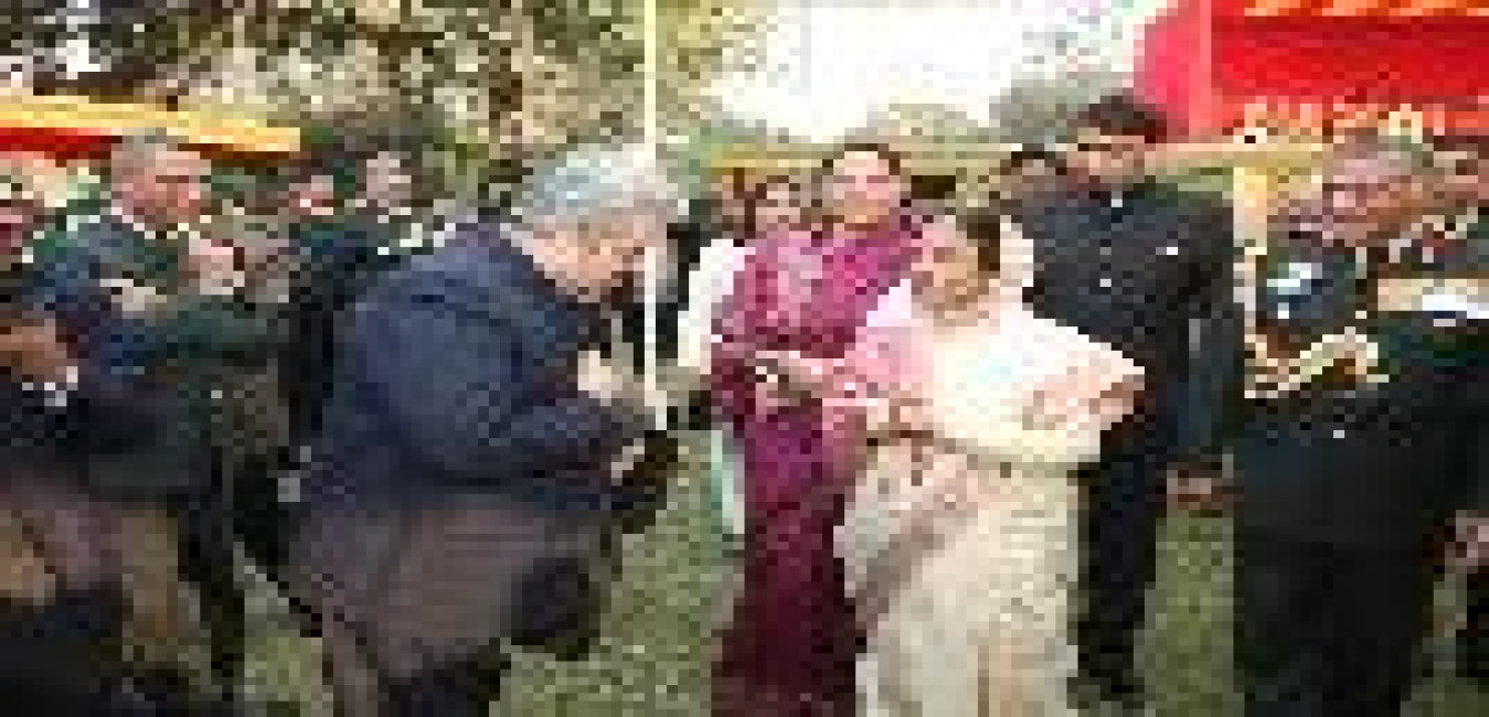 The President of India, Smt Pratibha Devisingh Patil interacting with the Army personnel who laid down their lives for the Nation at the Chief of Army Staff, General V K Singh's Residence on the occasion of Army Day at Army House, Rajaji Marg in New Delhi on Jan 15, 2012
