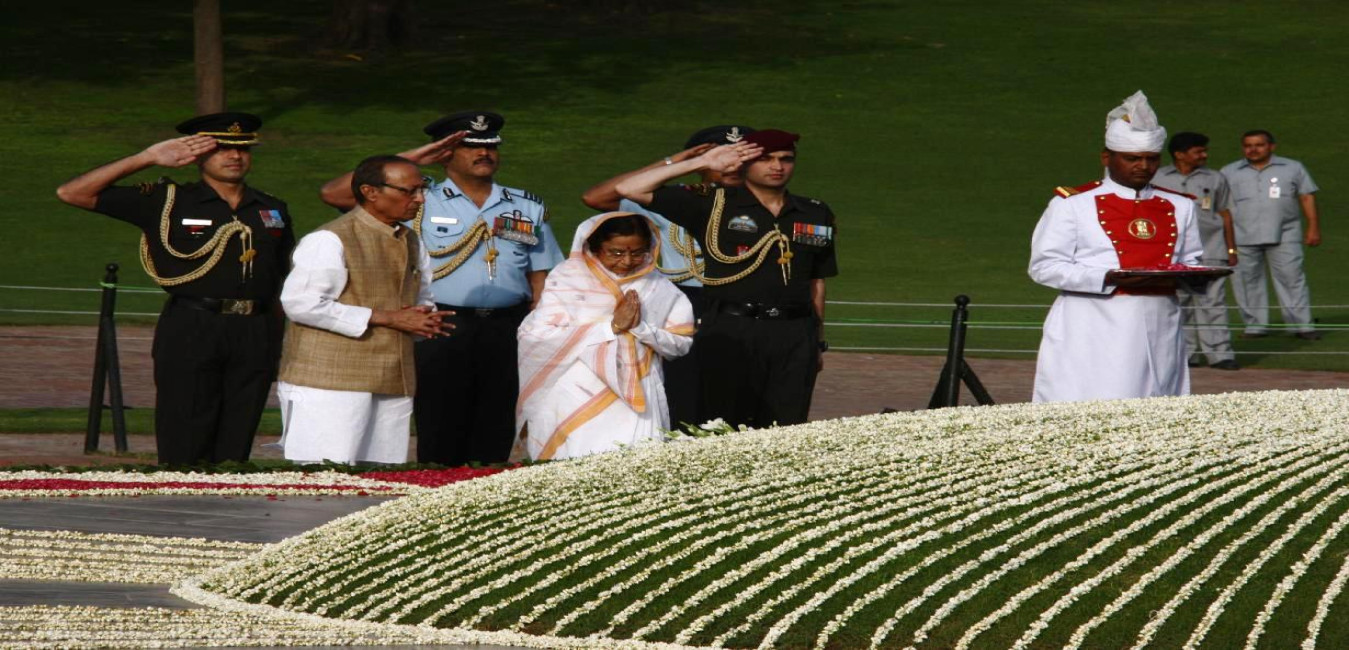 The President of India, Smt Pratibha Devisingh Patil paying floral tributes at the Samadhi of Former Prime Minister of India, Pandit Jawaharlal Nehru on his 48th Death Anniversary at Shanti Van in New Delhi on 27 May, 2012