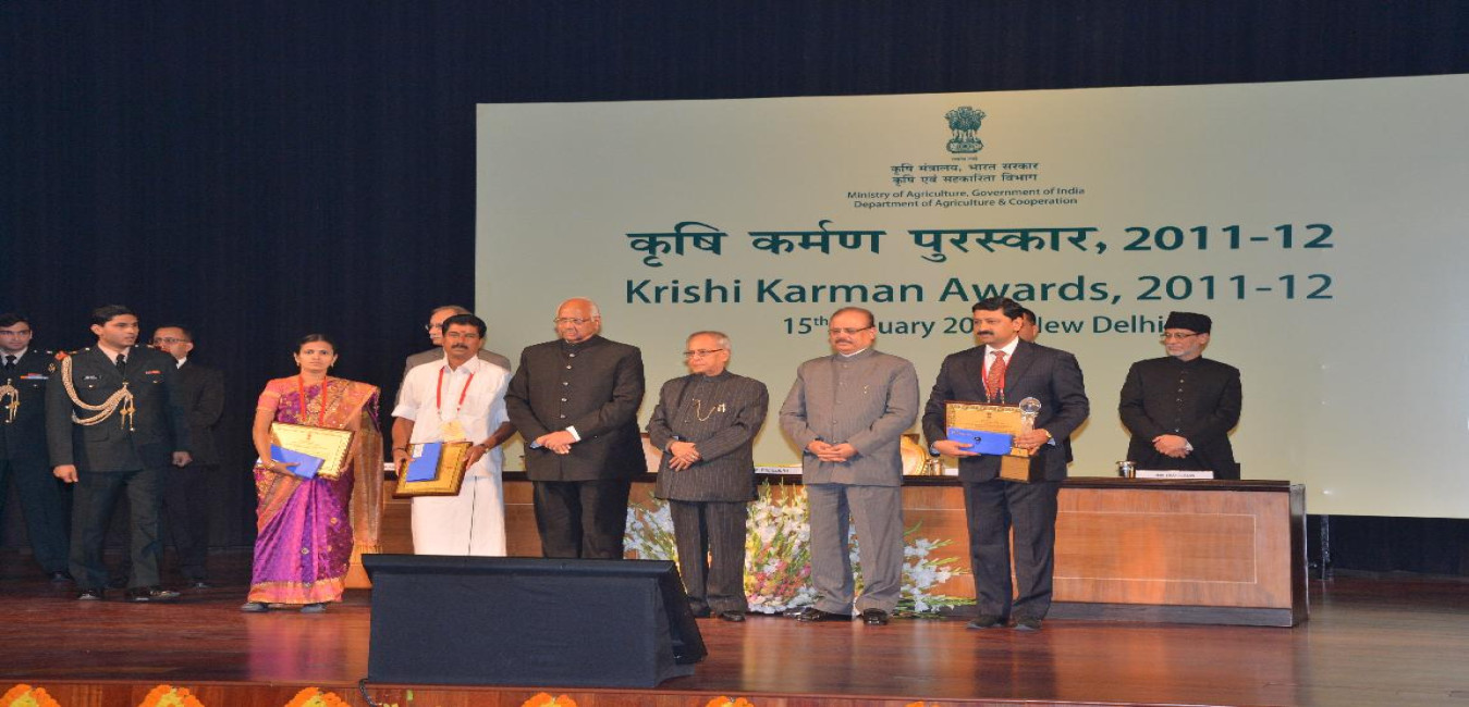 The President of India, Shri Pranab Mukherjee Presenting Krishi Awards on 15 Jan 2013
